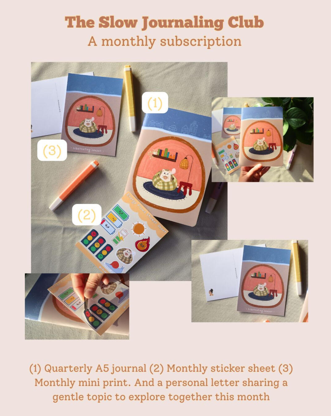 The Slow Journaling Club is a monthly membership by post for those of us who have enjoyed the benefits of journaling but don't want to transform it into another thing we NEED to do. Instead, we want space to be inconsistent and receive ideas on how to fill a few more pages 🥰Every month members will receive: